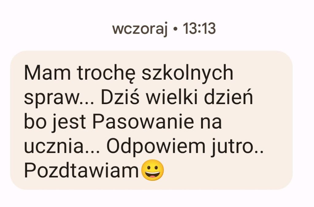 Zdjęcie pisanej konwersacji, nauczyciela z 35 letnim stażem zawodowym….